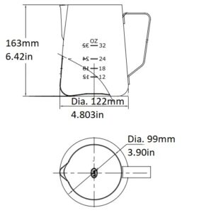 • 48 oz Latte Art Pitcher, Stainless Steel, Graduated, 27259