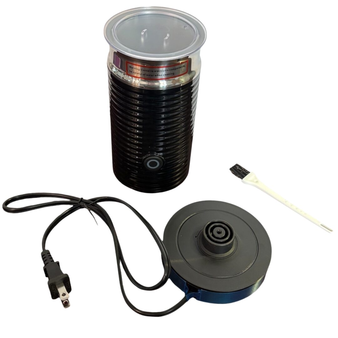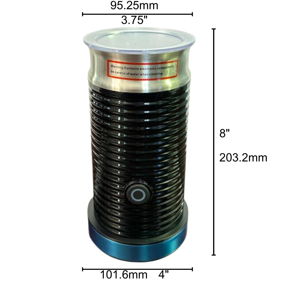 This rattleware electric milk frother is designed for effortless foam creation for lattes, cappuccinos, matcha, and hot chocolate. It stands 8 inches tall with a sturdy 4‑inch base and features a black finish protected by a removable blue film in product photos. With a 4.2 oz frothing capacity and 8.4 oz heating capacity, it’s versatile for both hot and cold beverages. The 100–220V compatibility and US plug make it ideal for home kitchens, cafés, offices, and travel. Built for convenience, durability, and consistent results.